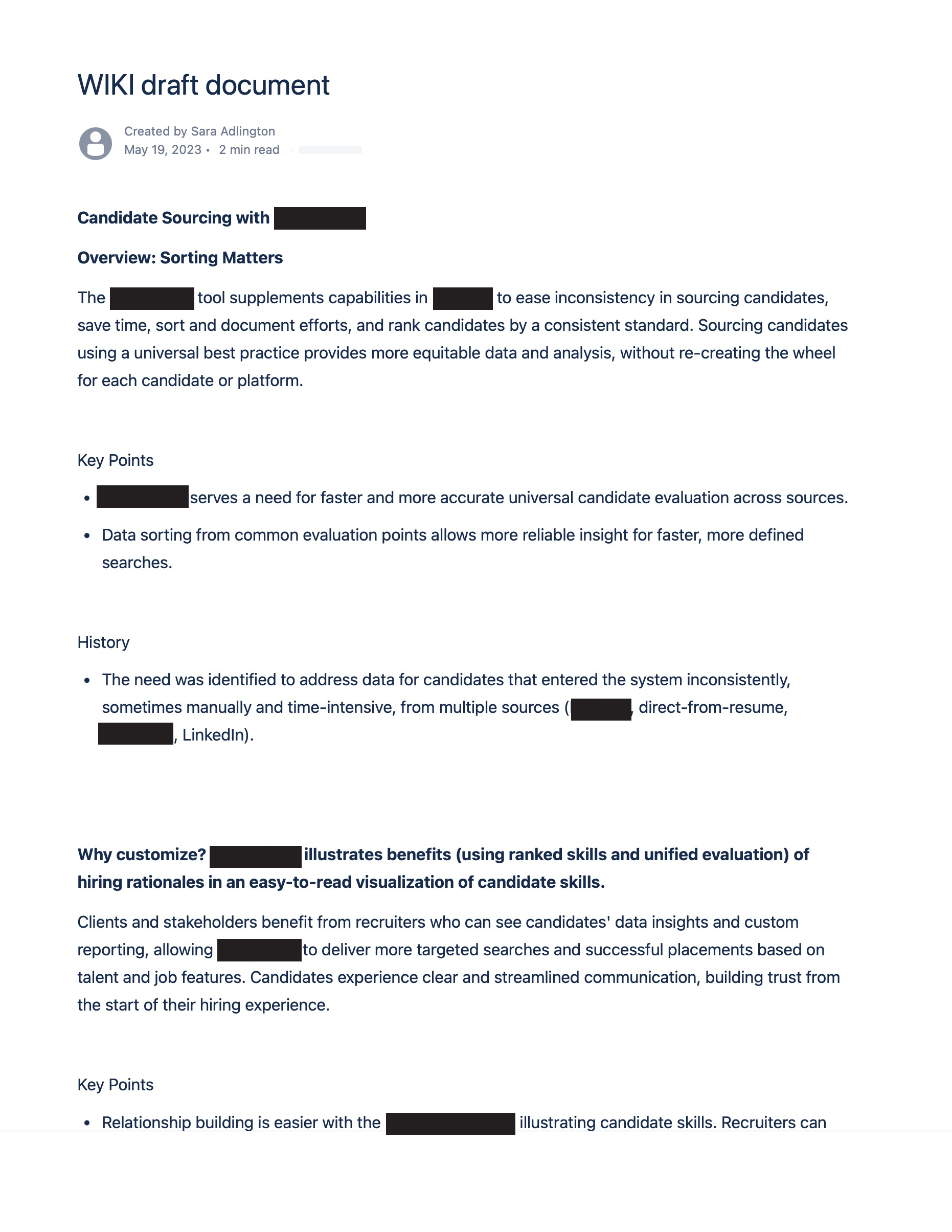 Develop a Wiki explainer for Robotic Process Automation/decisioning tool for candidate hiring and research. Worked with sales and product development team to summarize rationales for use during the build and deployment.